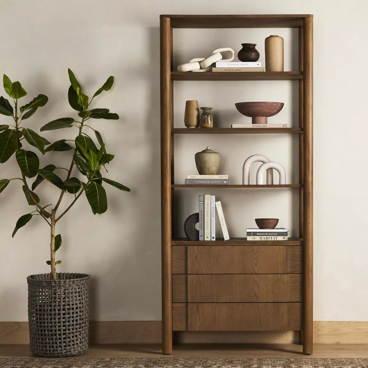 Kệ Lukea - Kệ sách không chỉ là nơi để lưu trữ sách mà còn là điểm nhấn quan trọng, mang đến sự cân bằng giữa tính năng và thẩm mỹ cho không gian sống. Kệ sách gỗ với 4 ngăn trống và 3 ngăn kéo là sự kết hợp hoàn hảo giữa sự tiện dụng và vẻ đẹp tự nhiên, giúp tạo ra không gian sống gọn gàng, tinh tế và hiện đại. Ngoài 4 ngăn trống, kệ sách còn được trang bị 3 ngăn kéo bên dưới, mang đến không gian lưu trữ kín đáo cho những vật dụng nhỏ như tài liệu, đồ dùng cá nhân, hay các phụ kiện khác. Thiết kế ngăn kéo linh hoạt giúp bạn dễ dàng sắp xếp và bảo quản đồ đạc một cách ngăn nắp và thuận tiện.