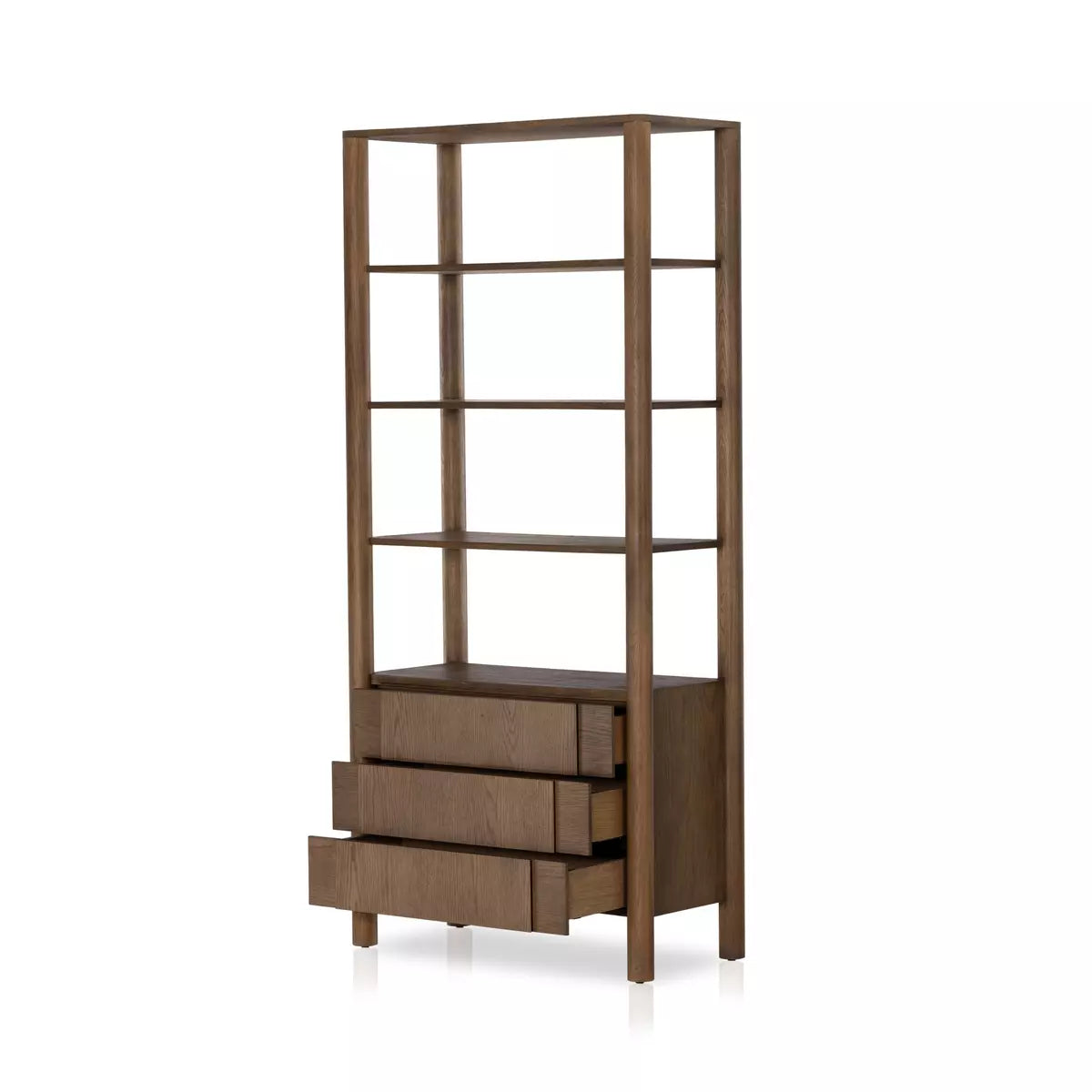 Với thiết kế tối giản và hiện đại, kệ sách gỗ 4 ngăn trống, 3 ngăn kéo không chỉ đáp ứng nhu cầu lưu trữ mà còn giúp tạo nên không gian sống sang trọng, lịch sự. Các đường nét gọn gàng, cân đối cùng với màu sắc tự nhiên của gỗ giúp sản phẩm dễ dàng kết hợp với mọi phong cách nội thất, từ hiện đại đến cổ điển. 4 ngăn trống rộng rãi cung cấp không gian lý tưởng để trưng bày sách, đồ trang trí, hoặc các vật dụng yêu thích. Bạn có thể sắp xếp sách theo chủ đề hoặc phong cách riêng, tạo nên một góc đọc sách đầy cảm hứng ngay tại nhà.