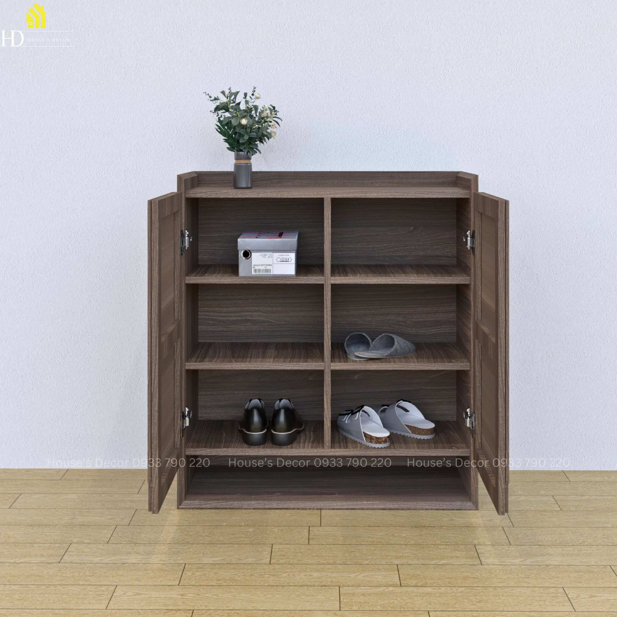 Tủ giày được làm từ gỗ tự nhiên kết hợp với cánh song, mang đến vẻ đẹp mộc mạc nhưng không kém phần sang trọng. Chất liệu gỗ tạo nên sự chắc chắn, bền bỉ, trong khi cánh song giúp không khí lưu thông tốt, giữ cho giày dép luôn khô ráo và thoáng mát. Được thiết kế với nhiều ngăn chứa, phù hợp cho việc lưu trữ đa dạng các loại giày dép từ giày thể thao, giày cao gót đến dép lê. Kích thước các ngăn được tối ưu để chứa được nhiều đôi giày hơn mà không làm mất đi vẻ thẩm mỹ tổng thể.