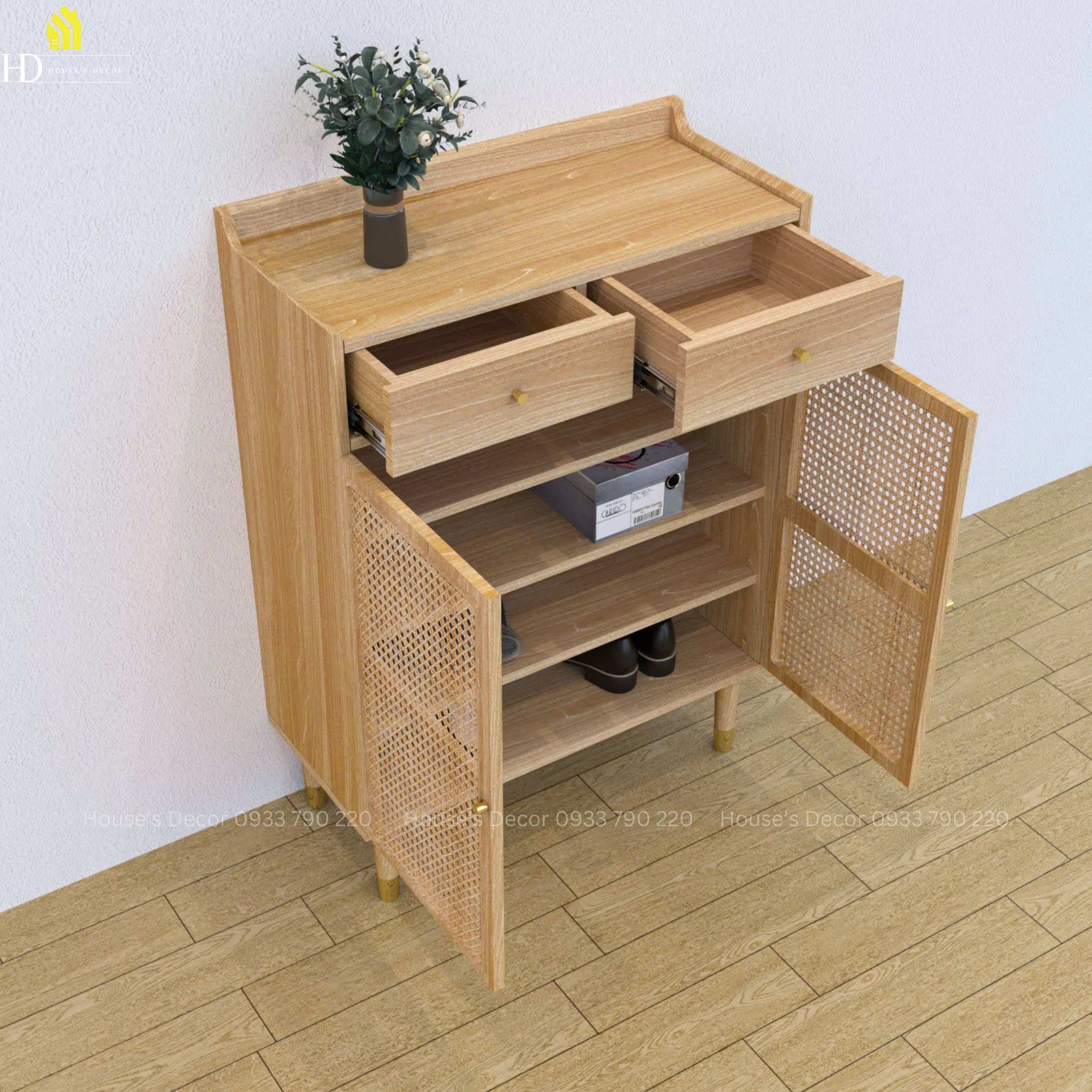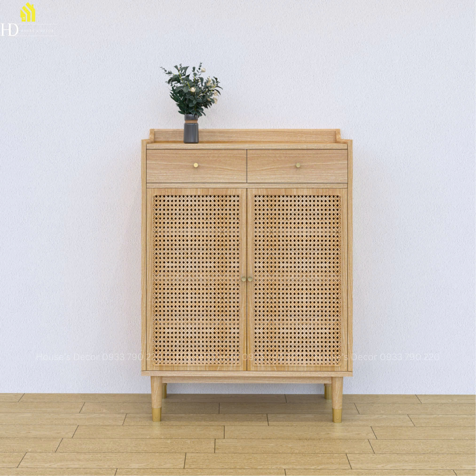Phong cách sống xanh là một trong những phong cách được mọi người hướng tới nhiều nhất bởi lẽ nó gần gũi, thân thuộc với thiên nhiên như mây, gỗ,... Tủ cánh mây là một thiết kế tiện lợi mang đến sự sang trọng cho không gian sống của bạn. Tủ được chia ra 2 không gian chính. Phần cửa mở kết hợp với chất liệu mây , toát lên nét vintage và hoài niệm. Phía trên không gian là 2 ngăn kéo giúp bạn có thể bảo quản những món đồ dễ thất lạc như chìa khoá, giấy tờ,...